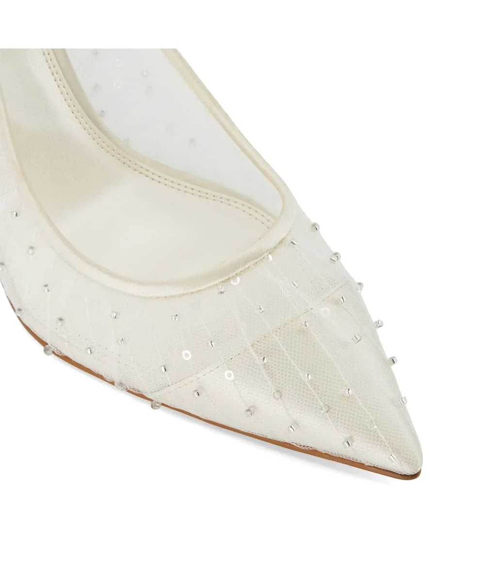 Daring yet delicate, our Bespoke bridal courts have been crafted from a delicately embellished sheer fabric adorned with hand placed sequins. This signature style has been designed with an elegant pointed toe and rests on our signature stiletto heel. Combining comfort and opulence, The Wedding Collection has been expertly crafted with a memory foam sock lining to take you seamlessly from ceremony to first dance and beyond.