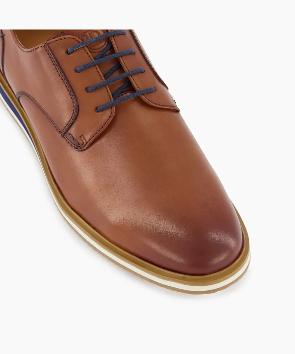 Channel total sophistication with this smart shoe from Dune. Cushioned at the heel and detailed with topstitching. It rests on a vibrant and contemporary cleated wedge sole.