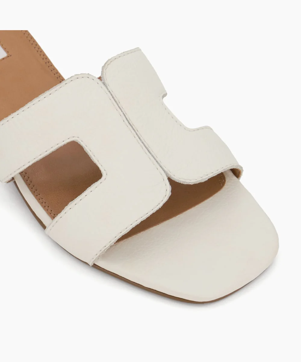 Stay smart and stylish this summer with Dune London's Loupe slider sandal. Featuring a cut out design with contrast stitching and a low block heel. An open sandal toe and resin sole complete the striking shoe.