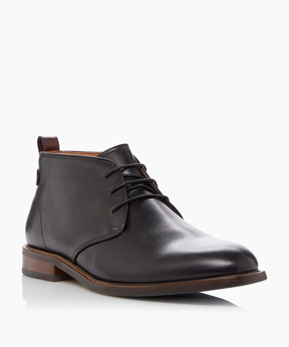 The Marching desert boot by Dune London is a smart-casual staple. Features a neat and secure lace-up fastening and back pull up tab. A low block heel and round toe complete the handsome design.