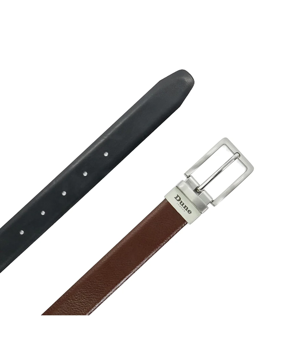 This reversible belt has the benefit of offering a tan and black leather styling option. Complete with branding on the metal buckle, Ormondd lends itself to casual and smart dressing.